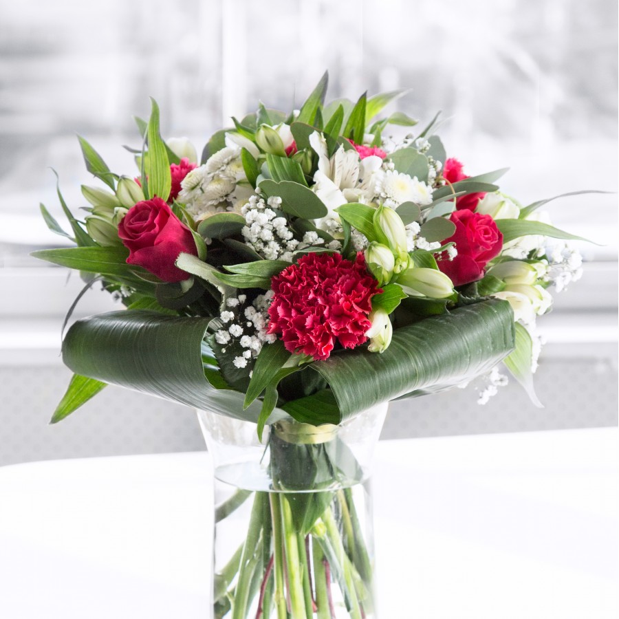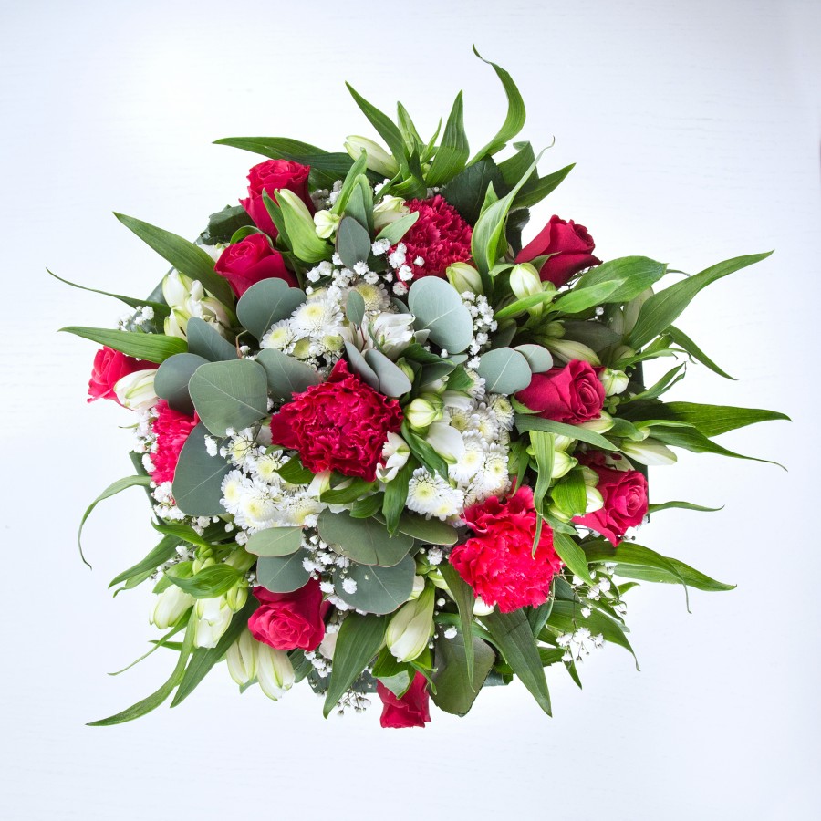 With next-day flower delivery in Bracknell on orders placed before 4 pm, you can send stunning flowers quickly and reliably. Due to seasonal availability, some stems may be substituted, but we always match the colour, style and value to maintain the bouquet's luxurious look. Order this imaginative red rose and white chrysanthemum bouquet from Flower Delivery Bracknell today and let your thoughtful gift speak for you.